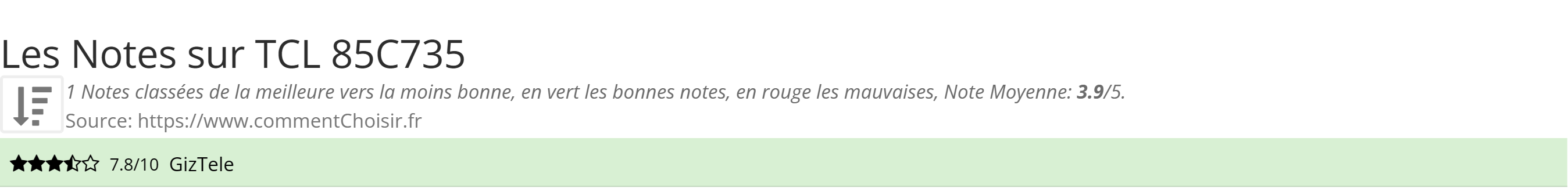 Les notes des sites et magazines internet peuvent etre peut-etre biaisés, au moins avec les avis client et des utilisateurs qui ont acheté TCL 85C735 sur amazon ou la fnac, on est sur d'avoir de vrais critiques sur ce produit. (les liens vers les magasins sont sponsorisés).