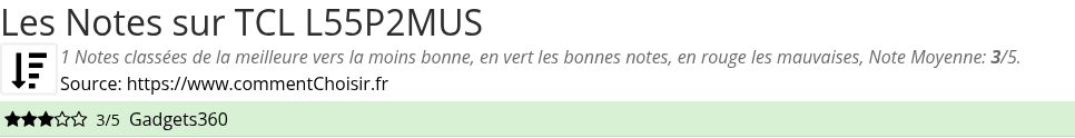 Les notes des sites et magazines internet peuvent etre peut-etre biaisés, au moins avec les avis client et des utilisateurs qui ont acheté TCL L55P2MUS sur amazon ou la fnac, on est sur d'avoir de vrais critiques sur ce produit. (les liens vers les magasins sont sponsorisés).