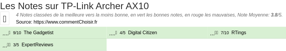 Voici tous les 4 avis et les tests que nous avons trouvé sur le Réseau TP-Link Archer AX10 avec les 4 notes et les commentaires des testeurs dans leur review.