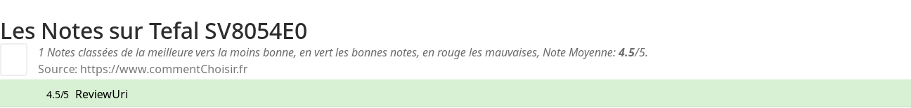 Voici tous les 1 avis et les tests que nous avons trouvé sur Tefal SV8054E0 avec les 1 notes et les commentaires des testeurs dans leur review.