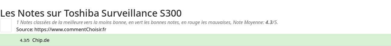 Pour mieux comparer, nous avons cherché pour vous les avantages et inconvénients de Toshiba Surveillance S300 et les notes données par les sites spécialisés.