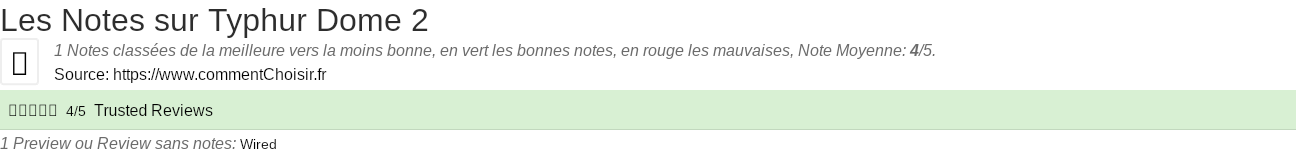 Les "Pour et Contre" sur Typhur Dome 2 détails des avis et notes