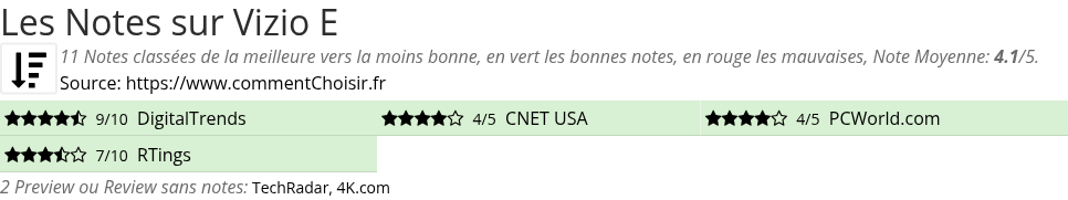 Pour mieux comparer, nous avons cherché pour vous les avantages et inconvénients de Vizio E et les notes données par les sites spécialisés.