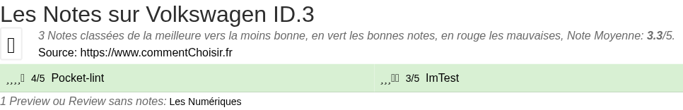 - 4 tests trouvés avec 3 notes pour Volkswagen ID.3