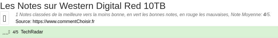 Voici tous les 1 avis et les tests que nous avons trouvé sur le Disque Dur Western Digital Red 10TB avec les 1 notes et les commentaires des testeurs dans leur review.