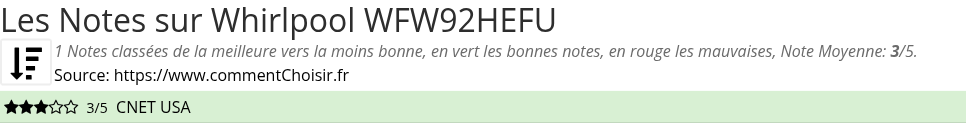 Pour mieux comparer, nous avons cherché pour vous les avantages et inconvénients de Whirlpool WFW92HEFU et les notes données par les sites spécialisés.