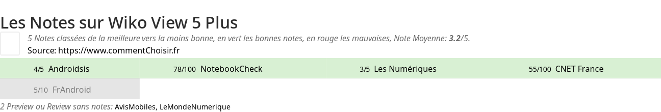 Les notes des sites et magazines internet peuvent etre peut-etre biaisés, au moins avec les avis client et des utilisateurs qui ont acheté Wiko View 5 Plus sur amazon ou la fnac, on est sur d'avoir de vrais critiques sur ce produit. (les liens vers les magasins sont sponsorisés).